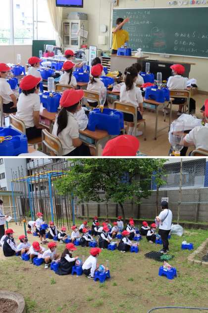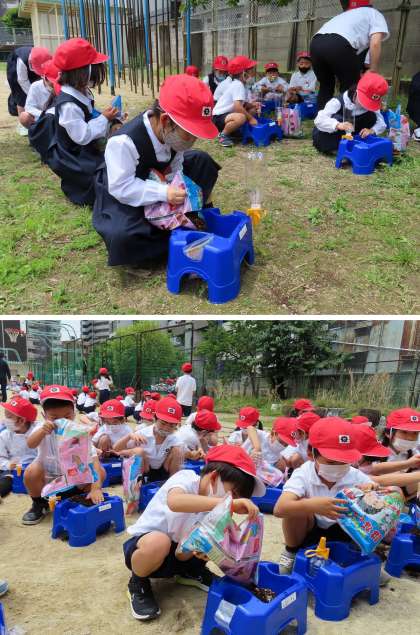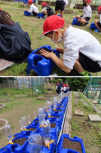 1年生が、アサガオの種を植えていました。