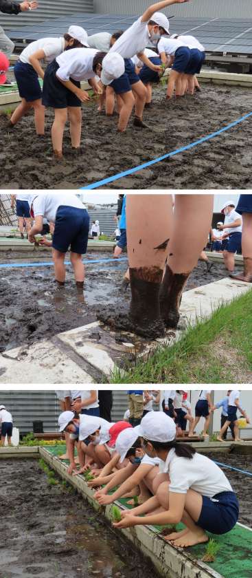 ほとんどの子は、田んぼに素足で入るなんて初めてのことでしょう。