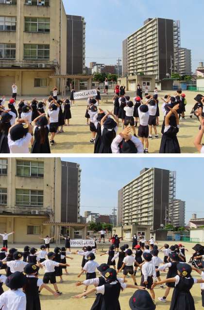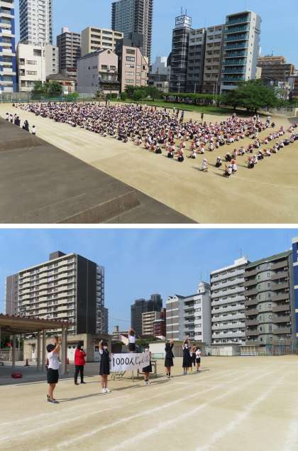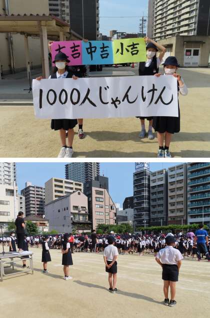 今日は、運動場に集まって『1000人ジャンケン』をしました。