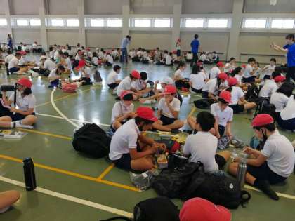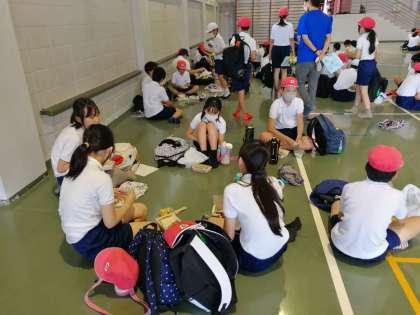 外があまり日陰がなかったので、体育館を開けてもらって、中で食べることにしました。