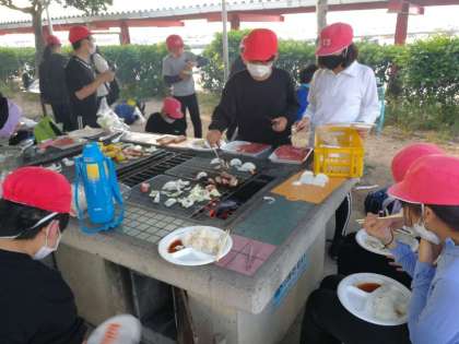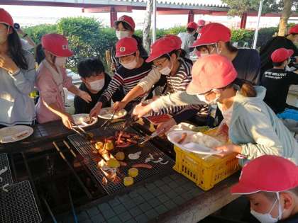肉が焼けるのが待てないようです。
