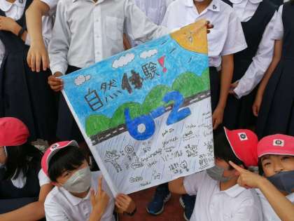 学級ごとに旗を作っていたので、その旗も一緒に撮りました。