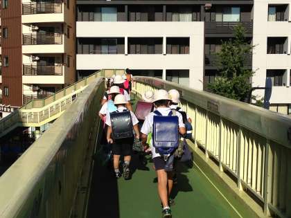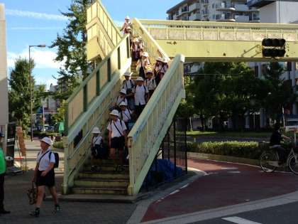 今朝は特に混乱もなく、子ども達はいつものように歩道橋を渡って登校していました。