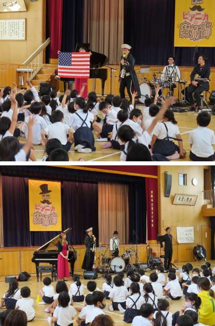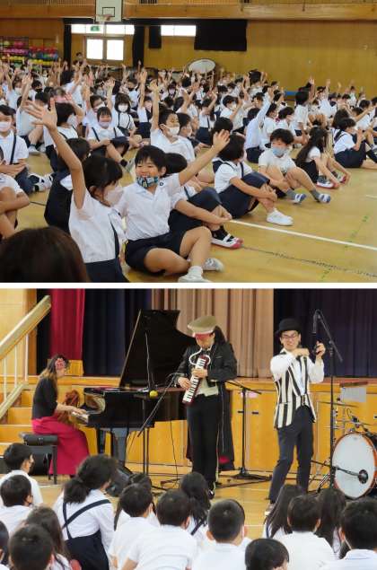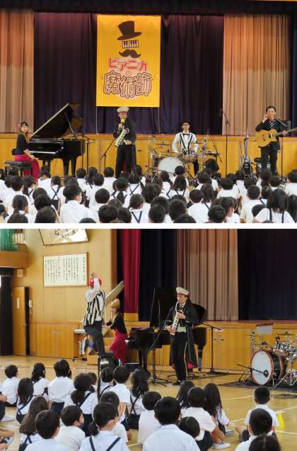 『ピアニカの魔術師』という音楽団に来ていただき、音楽鑑賞会を行いました。