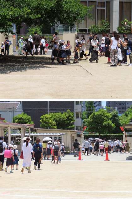 実際に地震などの自然災害が起こった場合は、今日のように保護者の方に直接引き渡し、残った児童は、講堂などに集めて待機させるといった対応となります。