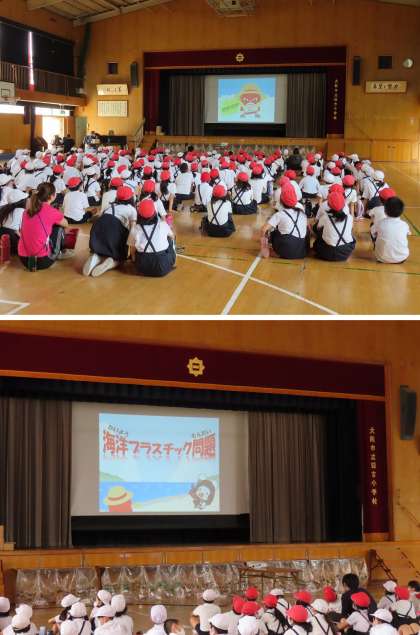 今日は4年生の子どもたちに、環境事業局の方が学校に来て授業をしてくれました。