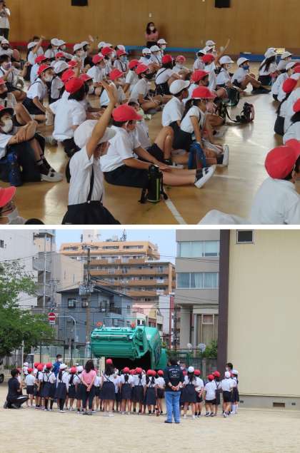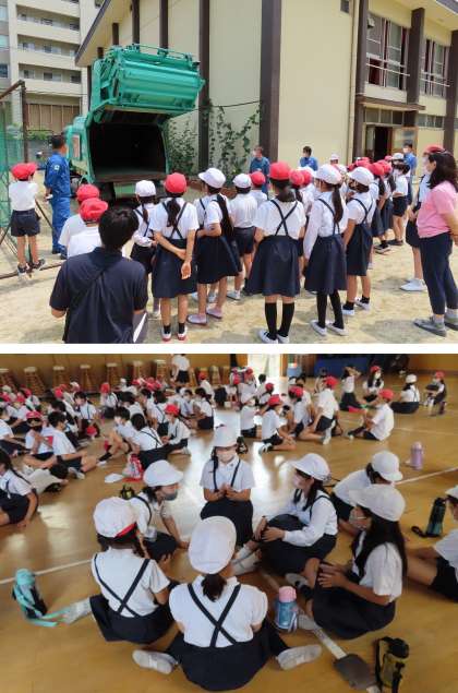 パッカー車を見せてもらったり、分別のクイズを学級対抗で行ったりもしました。