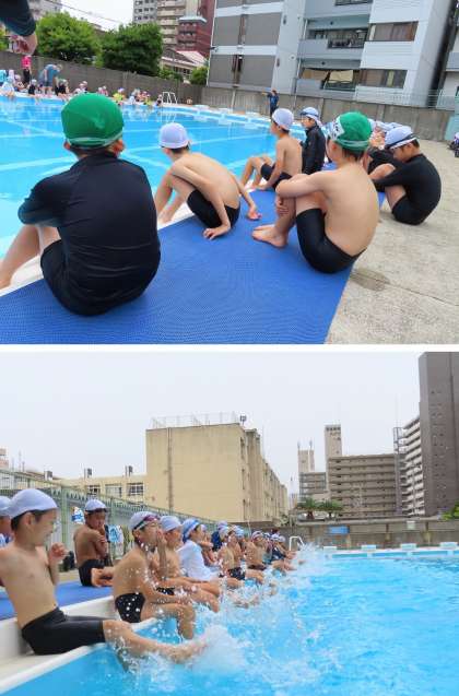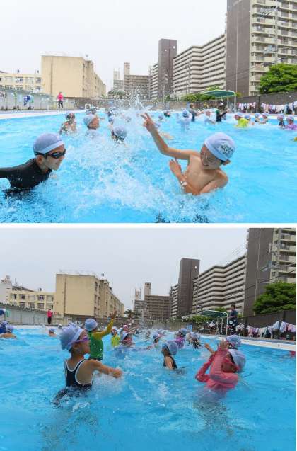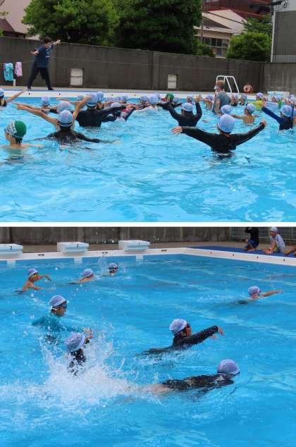 久しぶりに学校のプールに入って、みんなは少し興奮ぎみ!