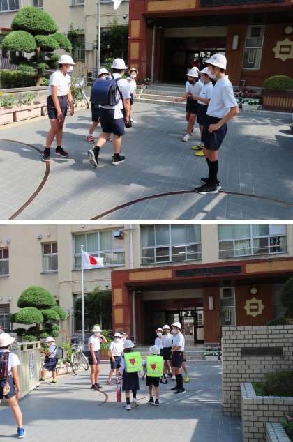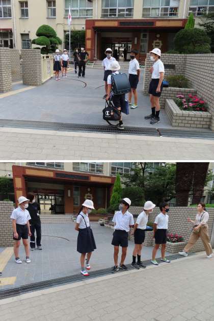 コロナ禍の前は、毎週登校班が交代で、あいさつ当番をしていました。