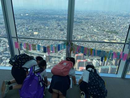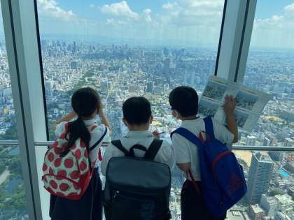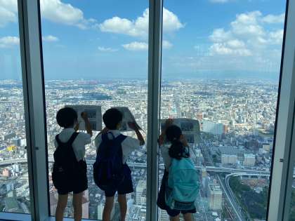 子どもたちは、大阪の街並みを、食い入るように見ています。