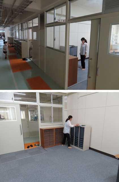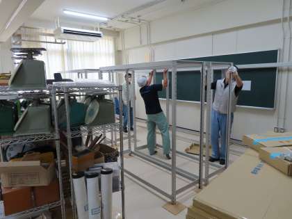 今、業者の方にも来てもらい、学校の職員も手伝って棚を設置したり、事務室のレイアウトを考えたりしています。