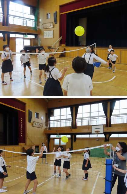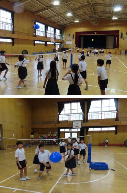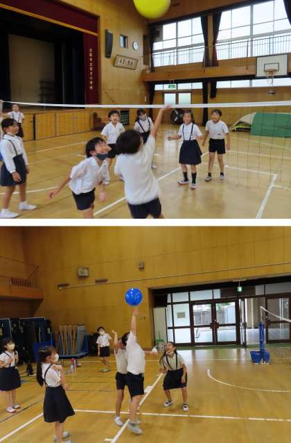 3年生が『お楽しみ会』で、講堂で“風船バレー”をしていました。