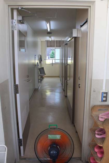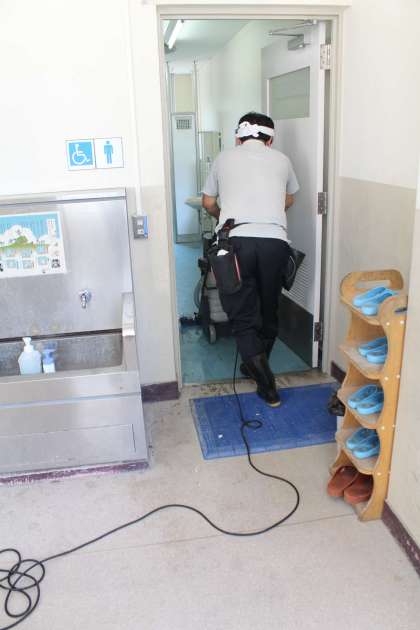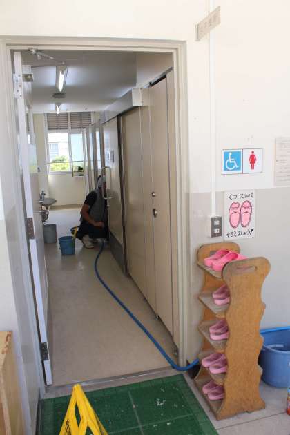 今日は、業者の方に校舎のトイレ清掃を行ってもらっています。