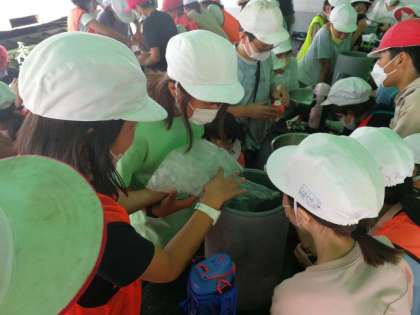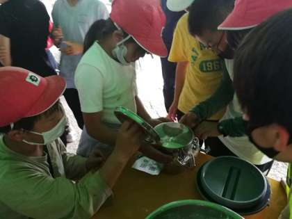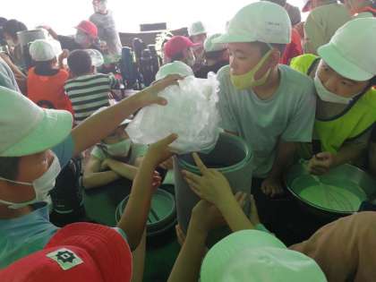 アイスクリームの元を容器に入れ、氷で筒を満たしますけど