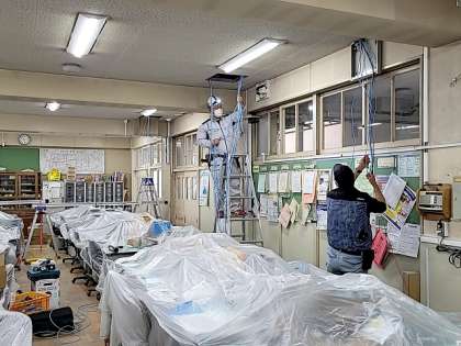 職員室 パソコン用電源・LANケーブル配線工事 8月10日