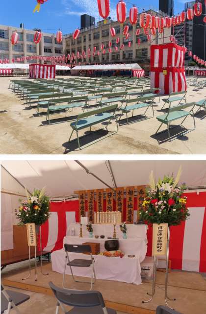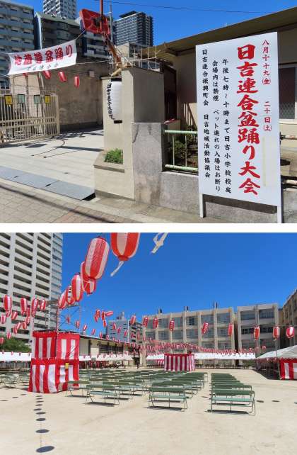 今日は午後7時から、校庭で日吉連合の盆踊りが行われます。