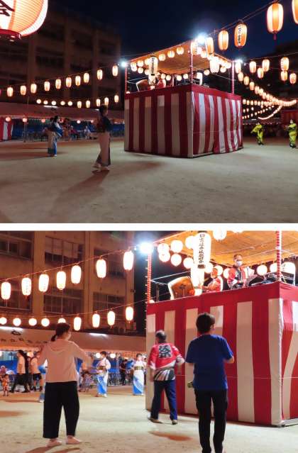 だんだんと地域の方も増え始め、盆踊りの輪も二重、三重となり、地域の方に交じって教職員の方も一緒に参加してくれました。