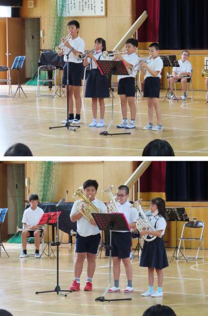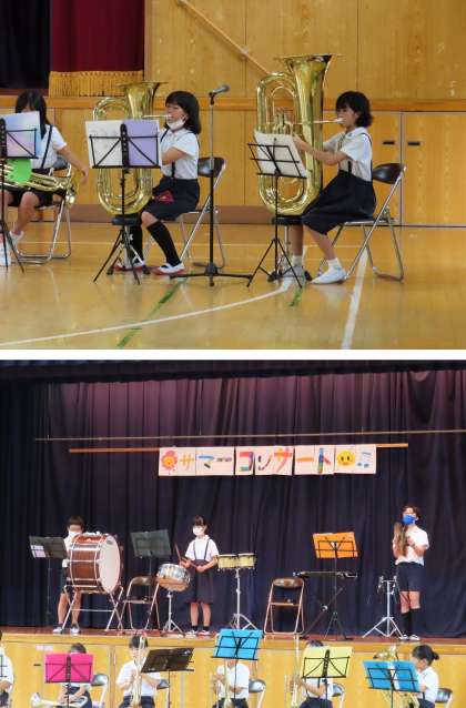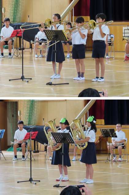 ファンファーレ、『さんぽ』の演奏のあと、各パートごとに楽器を紹介してくれました。