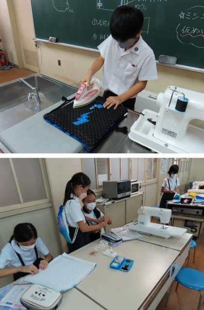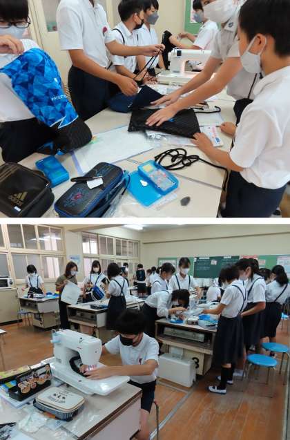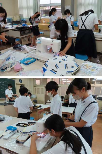 6年生が、家庭科室で『ナップサック』を作っていました。