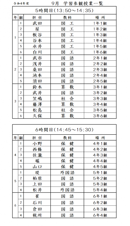 ※教室とろうかを入れ替わりながら、参観をお願いします。