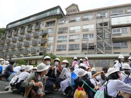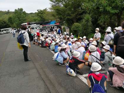 雨が何とか止んでいるので、旅館前に集合することにしました。