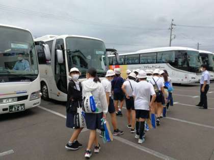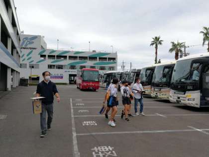 バスに乗り込み、これから日吉小に向けて出発します。