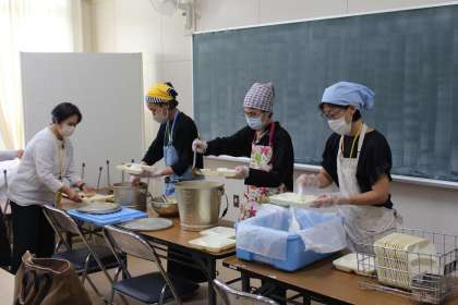 家庭科室と会議室、2教室での試食にしたり、パーテーションを置いたり、配食の際にはビニール手袋と消毒をするなど、PTAの方々が感染防止対策をしっかりとしたうえで、安全に、試食会を行うことができました。