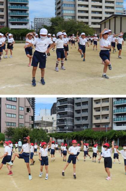 どの学年も練習場所を講堂から運動場に変え、ダンスや個人走の練習を始めています。