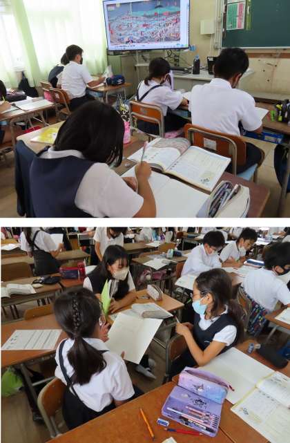 その秘密を解き明かすために、子どもたちは教科書の資料を調べて発表していました。