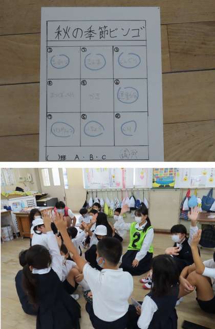 今日の児童集会は、『秋の季節ビンゴ』でした。
