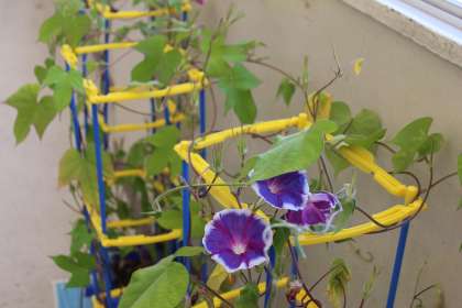 先にツルの手入れをした様子を紹介しましたが、現在、所狭しと支柱にツルが巻き付いて花が盛んに咲いています。もうすぐ夏休みに入るので、これから後は、お家で観察を続けていただくことになります。