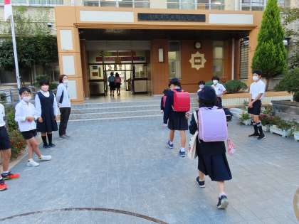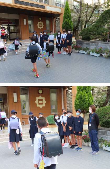 24日(月)から1週間、玄関に協力委員会の子どもたちが立って『あいさつ運動』をしています。