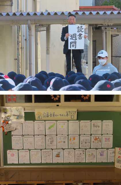 学校に届いた賞状を紹介したあと、今週は『読書週間』についての話をしました。