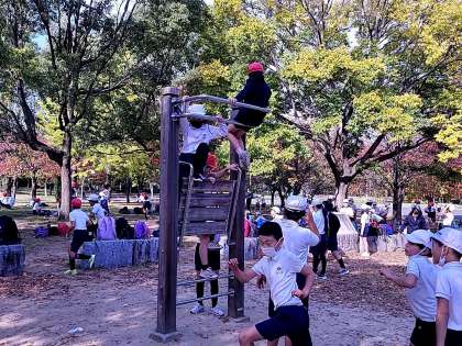 お昼ごはんの後の自由時間です。みんな元気に友達と楽しく遊んでます。