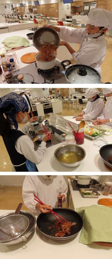 6年生が、クラスごとにハグミュージアムへ行って調理実習をしています。