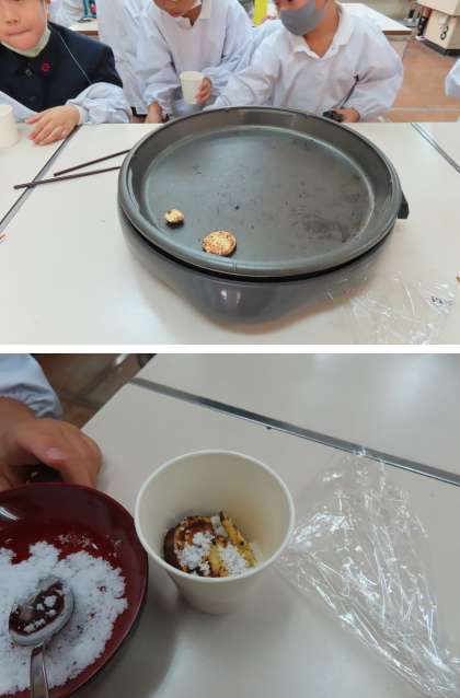 2年生が、学習園で収穫したサツマイモを使って『おいもパーティー』をしていました。