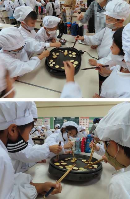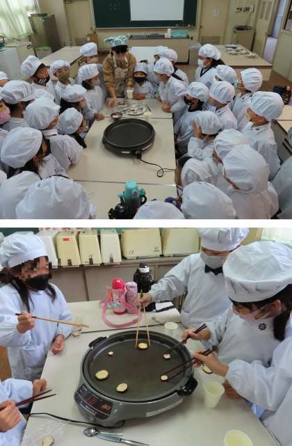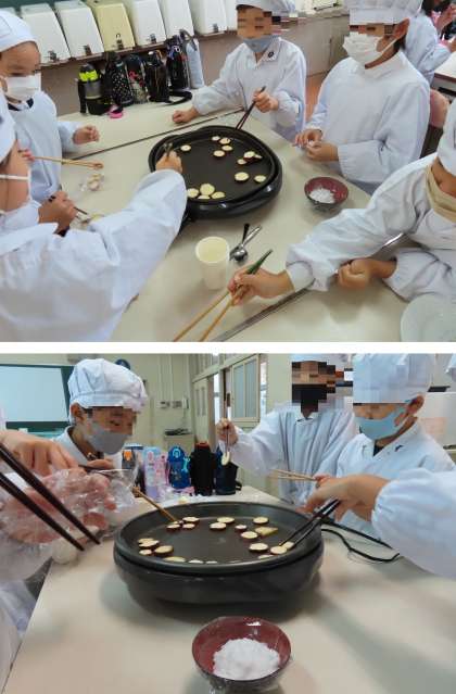 グループごとに、みんなで相談しながら両面を焼いていました。