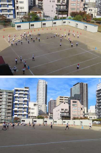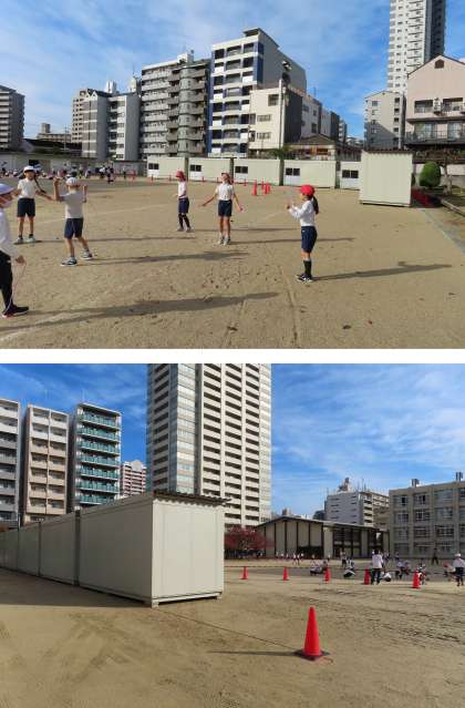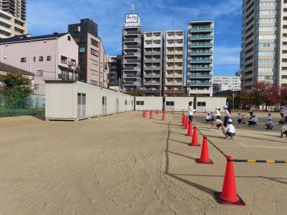 少しずつ作業が進み始めましたが、その分、運動場も狭くなってきました。