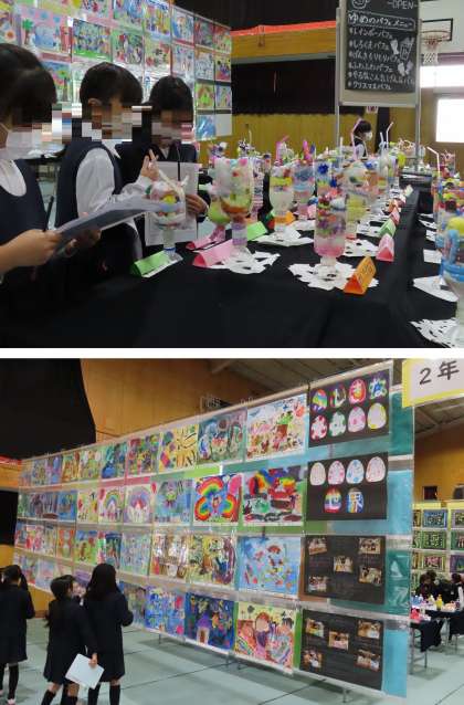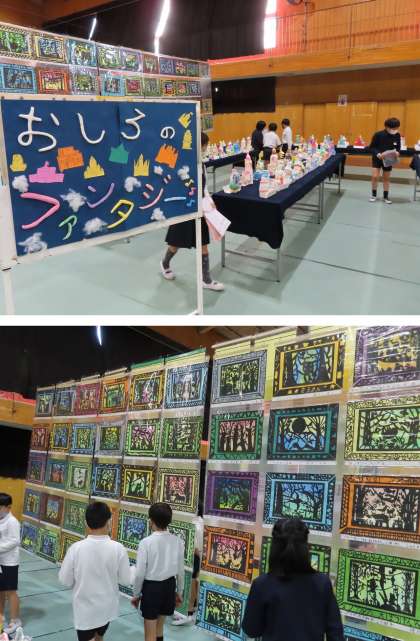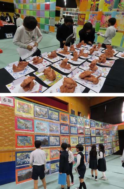 子どもたちの力作が、講堂にずらっと並んでいます。