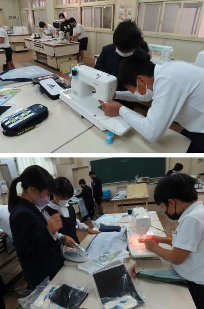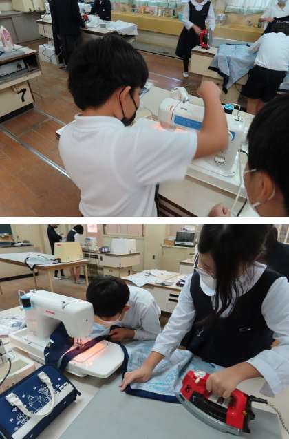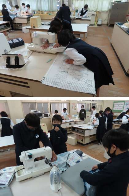 アイロンで三つ折りにしたり、ミシンで縫ったり・・