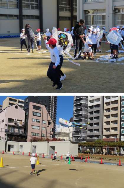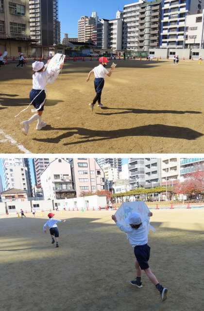来週には、日吉幼稚園のお友達との一緒に凧あげをする予定です。