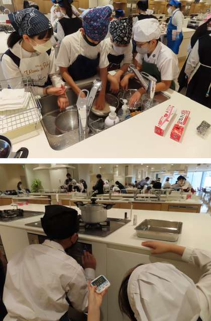 まずは、炊飯です。おなべで炊く方法を教えてもらって炊き始めました。