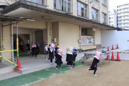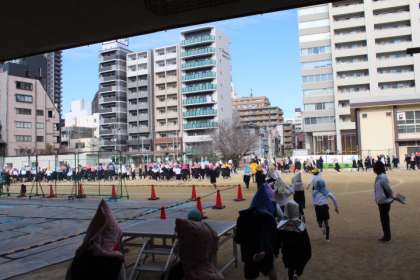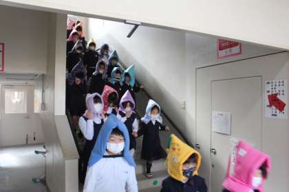 自然災害はいつ起きるかわかりません。今日の訓練は、児童には事前連絡なしで行いました。災害発生の放送が流れてから、全校児童が素早く運動場に集まることができていました。