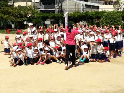 2年生のみんながリズムに乗って踊れるように、一生懸命練習しています。