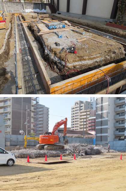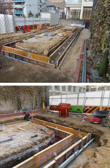 また、講堂横に体育倉庫を建てるため、その基礎工事を行っています。
