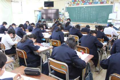 各教室では、みんな真剣な表情で、答案用紙に答えを書き込んでいました。