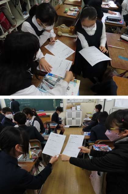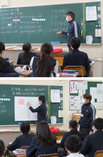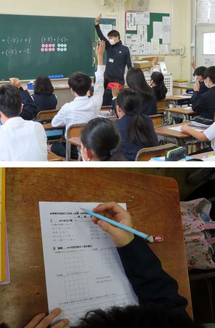 今日は6年生の算数を、堀江中学校の数学の先生に教えてもらいました。