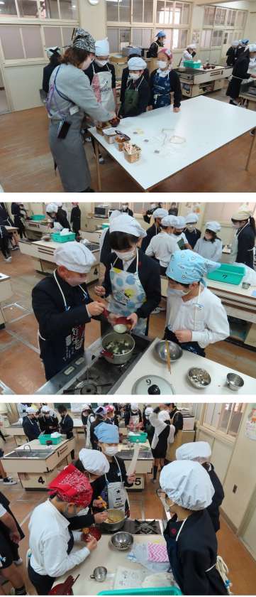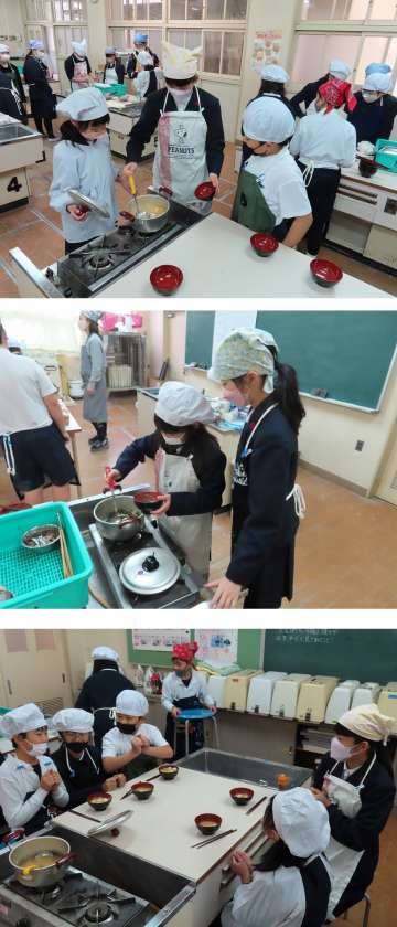 5年生が調理実習で、『おみそ汁』を作っていました。