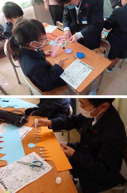 作り方を黒板に書いたり、5年生が中心になって他の学年のお友だちを手伝ったりしていました。