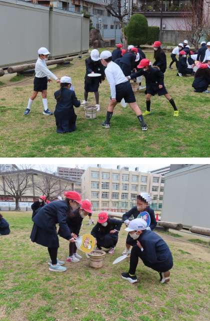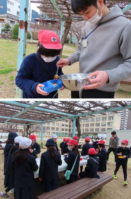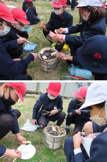 3年生が、昨日に引き続き、七輪を使ってお餅を焼いていました。